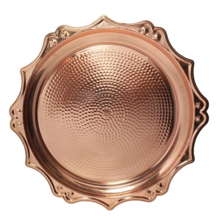 باسلام سینی مسی طرح ستاره ای سایز 1 یه سینی جذاب و ظریف که میشه با ست خورشیدی جورش کرد و از استفاده ازش لذت برد ظاهر بسیار شیک و زیبا ورقه مسی با کیفیت و ضخیم نانو شده و ضد خش و ضد سیاهی مناسب پذیرایی در منازل و کافه رستوران ها✅️ ابعاد این محصول: قطر: 27 سانتی متر ارتفاع: 1/5سانتی متر وزن: 372 گرم