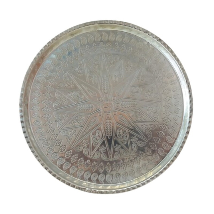 باسلام سینی مسی لبه کوتاه طرح دار کروم سایز 6 همونطور که تو عکس هم مشخصه: یه سینی زیبا با طراحی درجه یک طرح و نقش برجسته و بی عیب و نقص ورقه مسی ضخیم و با کیفیت و براق👌 ظاهر بسیار زیبا✅️ تو سایز های متفاوت✅️ مشخصات محصول: قطر: 27 سانتی متر ارتفاع: 1/5 سانتی متر وزن: 480 گرم